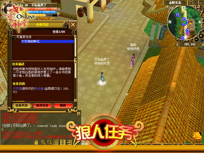 为了让每个玩家在内测的世界中享受到更多更好玩的内容,所以在内测中,我们会举行特殊的如来活动周,每个礼拜的每一天都将会有完全不同的活动内容。此次内测我们为了让玩家能更好的享受游戏带里的快乐,我们把活动周分为周一送花日、周二材料日、周三跑镖日、周四寄养日、周五妖僧日、周六右脑日、周日状元日。只要玩家参与到游戏中来,就能找到别样的乐趣,获得丰富多彩的奖品。上周日正值七夕佳节,爱情成为这个城市唯一的主题,无论走到哪里空气中都弥漫着幸福的味道。而我们活动周的周一就是我们的送花日,每当此时,我们痴心的狼人就会为了寻找心中的爱情坚定不移的送出美丽的鲜花。