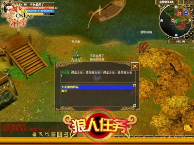 第四步:获得“未名花”回去交给大灰狼,大灰狼打发鱼叔鱼伯鱼兄鱼弟。你需要选择交出几个舍利,或者杀掉几只湖中的锯齿剑鱼来帮助玩家度过难关。