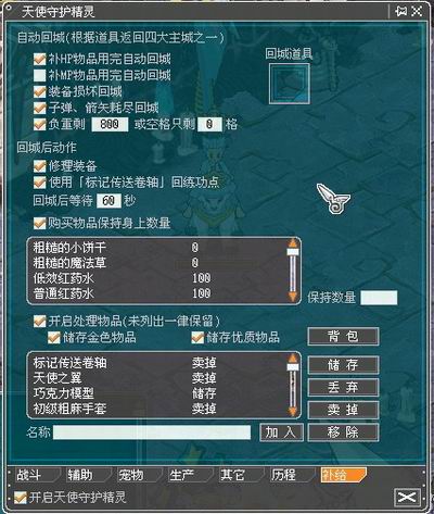 所有小天使将在界面左上方看到“守护精灵”系统的标志。单击“守护精灵”按钮或者是热键(Alt+R)即可打开“守护精灵”。守护精灵系统功能包括:战斗功能、辅助功能、宠物功能、生产功能、其他功能和历程功能,以及新增的打怪循环系统和采集循环系统。设置可谓面面俱到,完全让玩家没有后顾之忧!