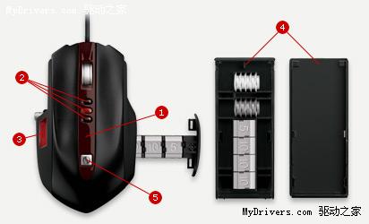 4. 随鼠标附带的附件盒,内装鼠标线固定器和调节鼠标配重的砝码