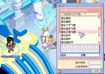 为了打造游戏中的PK达人,我们需要把我们的暗器进行强化处理。在美加路商店找“中级合成师娜蒂亚”就可以进行暗器的强化,在这里可以选择不同等级的暗器进行组合。不同的暗器需要的组合材料也是不同的,除了准备相同等级的普通暗器外,还需要相应的破片。低等级的暗器,如骷髅针、莲花针等可以在各城市的道具少女商店购买到,高等级的暗器就必须要通过打怪物或者挖地才能获得了。而破片的获得也必须通过打怪或者挖地。