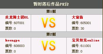 在主战场一片繁荣之际,PK台上则是硝烟弥漫,没有了节日一般的欢腾,回归了沙场的严肃。本周的PK赛仍缺少起伏,但有个明显的特点,则是面容依旧,经过二轮的PK赛后可以看到留在PK台上的作品仍然有第一轮时的败者。第三轮PK即将开始,四轮PK过后仍然落后的作品将被取消参赛权,不知现在暂时落后的这些作品打算何时奋起呢?现公布第二轮的PK结果(票数截止2007年9月11日16:00)如下: