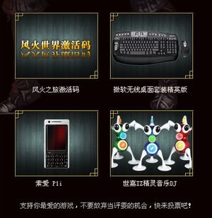 我们也知道有那么多的玩家在经历了封测、技测后,越发对“风火”痴迷。因为服务器开放的时间短暂,大家都很难体会到更深入的游戏内容。“风火”项目小组一直以来对广大玩家的感激之情只能深埋内心却苦于无法表示,所以我们决定在本次金翎奖“最佳3D网络游戏”的短信投票活动中将会发出大量的黄金激活码。以感谢玩家们一直以来的大力支持,满足大家需要更深入体会游戏的急切心情,也为打造国产网游大作贡献出自己的一份力量。