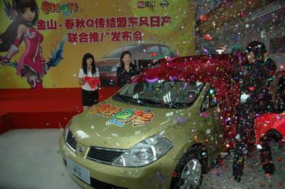 9月26日,金山软件正式宣布战略结盟大型汽车企业东风日产乘用车公司。这也是汽车行业与网络游戏行业首次战略合作,开创了双方各自行业合作模式先河。据双方透露,此次合作将围绕金山07年重点推广的产品《春秋Q传》推广展开,东风日产除为游戏提供豪华大奖“骐达”与“骊威”两款车型为《春秋Q传》推广助阵,同时金山也会将该两款车植入游戏,有望与游戏中即将出现的‘赛马’功能结合,供所有玩家游戏里激情体验。金山副总裁邹涛表示,“《春秋Q传》作为金山07年度进军Q版网游市场重拳产品,将进一步扩大金山在Q版网络游戏市场的份额。异业合作正日趋成为网络游戏营销推广的有效助推力,《春秋Q传》在成功与电影行业合作之后,与汽车行业深度结盟是金山未来在游戏推广过程中一次新的尝试”。