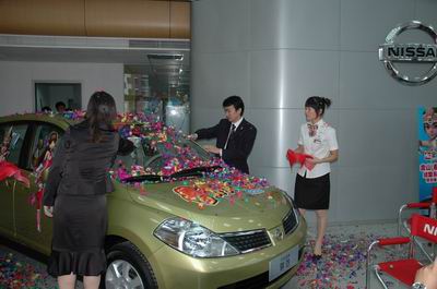 双方在骐达车上签名