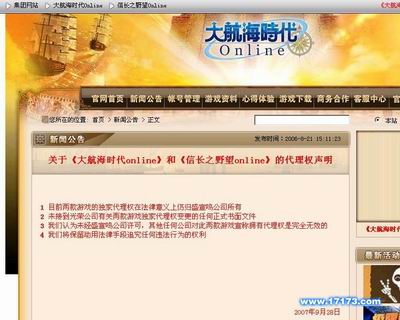 17173随后查询了光荣公司的中国网站gamecity.net.cn,发现该站也发布了北京中荣公司的代理公告。