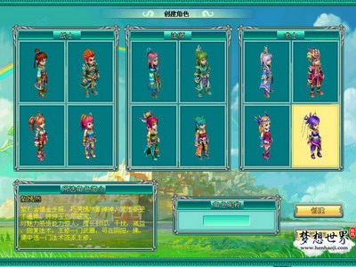 初次来到《梦想世界》,你首先要创建一个角色。游戏里有三个职业供你选择,分别是战士、法师和术士,战士对武器有着天生的感悟能力,它比其它职业更擅长学习和掌握武器招式;法师凭借自己在法术方面的天分,可以熟练掌握各个流派的法术,各种法术为法师提供了强大的伤害输出;与法师相比,术士拥有同样的法术天分,但它更擅长以封印、回复等法术。至于选择何种职业,那就要看你的喜爱了。