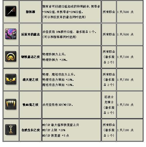 (可以和指挥棒同时使用) 所有职业 1天/600 点