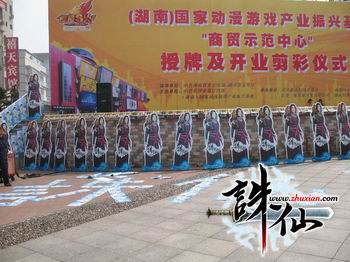 2007年9月27日,(湖南)国家动漫游戏产业振兴基地“商贸示范中心”在长沙黄兴广场举行隆重开业剪彩仪式,由长沙市委宣传部、***、湖南游戏学院、动漫SKY基地联合举办,完美时空应邀携《诛仙》参展,一时间,满城皆《诛仙》,万人齐注目!