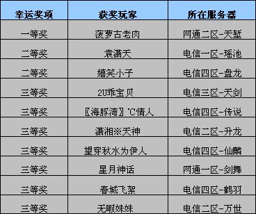 恭喜这十位幸运的玩家朋友!一等奖1名300元宝 二等奖2名各200元宝 三等奖7名各100元宝,奖励将在7个工作日内发放。
