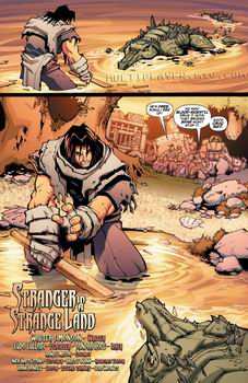漫画的主线是昏迷在卡利姆多海岸的人类男子,受失忆所困并被一个兽人萨满役使,为了生存与联盟和部落双方既有战斗又有合作,并试图找回自身被遗忘的过去。放出的5张图以“陌生大陆上的陌生人”为题开始……