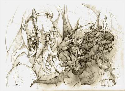 魔兽世界玩家手绘 战斗在外域的部落