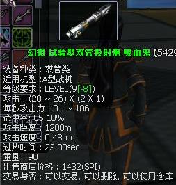 lv 1 A 幻想 试验型双管投射炮 吸血鬼 新建角色即可获得
