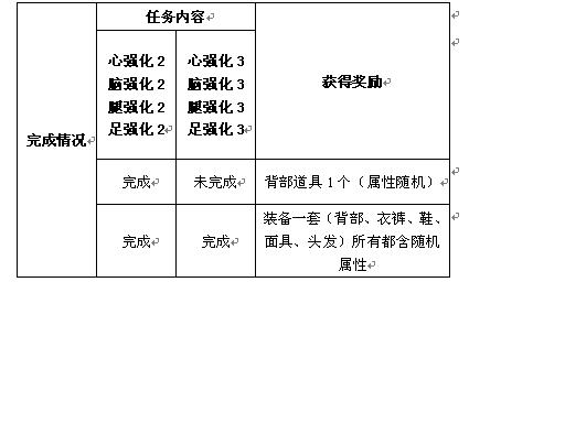 热血沸腾了么?这是属于真正热血玩家的活动,对于《***》充满了“爱”的你又怎能不来?不要再犹豫,你只需在活动规定的时间(11月3日到11月4日)内,进入游戏进行强化任务训练,完成表格中的不同内容便可以获得不同的奖励。