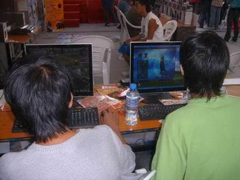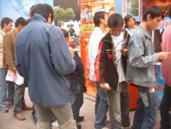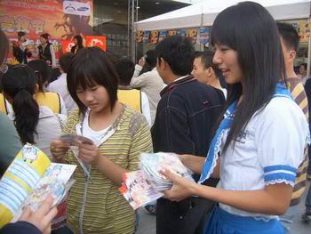 在接下来的8天里,《新蜀山》更是频繁派发周遍礼品和海报,让慕名而来的游戏迷们大呼过瘾。中广网美丽可爱的推广员MM也如磁铁般吸引了无数台相机的跟踪,她们一边展示产品,一边指导新玩家试玩,一边发周边,一边还要与热情的玩家合影,尽管辛苦,但是这对她们来说,也实在是一次难得的经历。