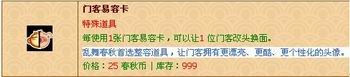 “门客易容卡”:定制个性化门客。不走寻常路,就是这么酷!乱舞商城中可以兑换,使用方法参阅产品说明。