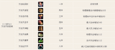 万法天劫,可以说是四大凡间神器中最神秘的,它的每个部件都只有涵义,渊源却不见经传。这也为这套装更添象征意义,成为凡间丹士界追求的最高目标。最高目标当然不是那么好拿,除了能在**花钱购买的四个部件之外,其它四部分只好委屈你去雷劫中碰运气,或许人品大爆发一次捞进也说不定。为了让你更好的识别这套稀世神套,也为了让你能先睹为快,现列该套装资料如下: