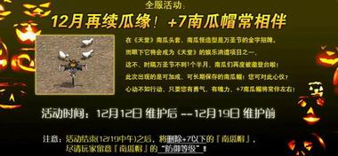万圣节期间,《天堂(专区)》推出了“万圣节南瓜派对”,只要拥有南瓜魔法帽就可以变身为南瓜稻草人,一时间,这种诡异的造型成了《天堂》中新的时尚。到处是蹦蹦跳跳的南瓜人的场景让《天堂》的玩家们津津乐道的同时也不免抱怨:为什么活动一结束,南瓜帽就消失了呀?