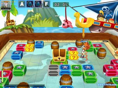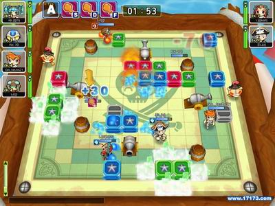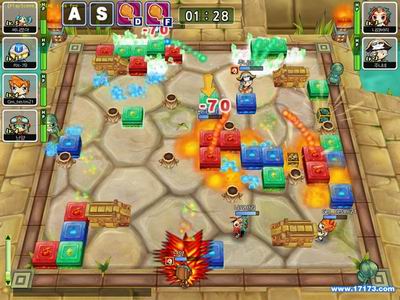 比赛规则为各个角色在四方形的地图上使用头脑和力量推动四方形的箱子或结合箱子里的属性击晕对方,箱子组合和移动过程中可以体验战略动作游戏的刺激与紧张感。