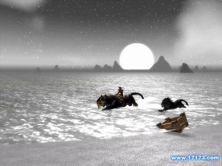 阴霾的天空、深邃的海洋、静谧的树林、悠扬的音乐……这是黑海岸独有的景观。每次旅行经过这里的时候,我总会想起公测时在黑海岸练级的时候,我那个24级才会用陷阱的猎人呵!凡是在黑海岸练级过的朋友应该都对海岸边上那些巨大鲸鱼的残骸记忆犹新吧,黑海岸中部靠北边的浅海中有两艘船,从米奈希尔港航行过来发生海难沉没在这里。有多少新手因为不会得心应手地游泳而淹死在这里?有多少新手被鱼人群殴死在船腹中?