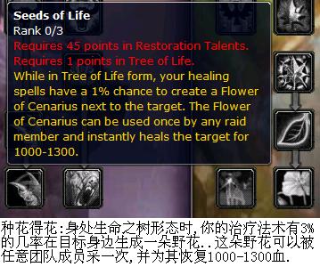 2。种花得花(囧)当你处于生命之树的形态你的恢复法术有3%的概率在目标周围种1朵花,可以被任意队员采集一次恢复1K到1。3的血