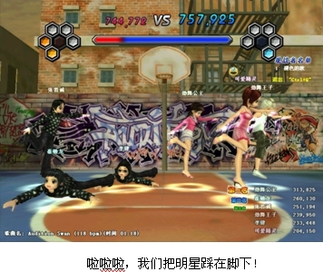 可以由任意三位玩家组成战队,迎战一个同样由三位明星组成的强大明星阵容,统一的服饰,均衡而高超的水平以及可怕的连P是明星们的杀手锏,千万不可掉以轻心哦!