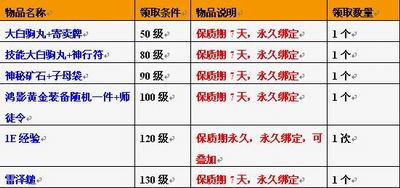 2、每个角色只能领取一次120级技能诀要、扩展箱图谱、照夜玉狮子,再次达到领取条件的帐号,需由同一个账号下其他角色领取;