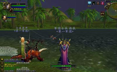 突然我看见一个身影,正站在绿洲边上我预定的钓鱼位置上甩着鱼竿呢,我急忙走过去确发现是我公会的LRMM七夜花开!