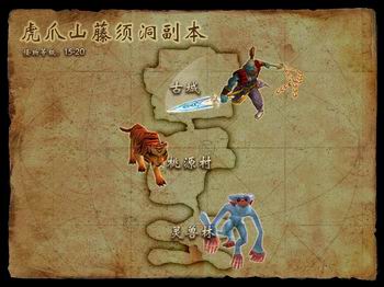 灵兽林,BOSS为“金猱首领”;虎王坡,BOSS为“虎王”;桃源村,BOSS为“山民护法”;古城遗迹,BOSS为“妖道尤太真”。