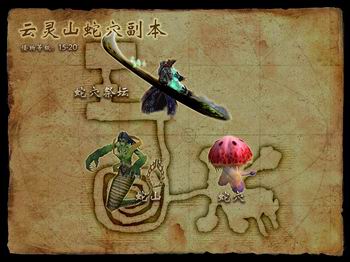 蛇穴副本入口坐标为(-173,-208),怪物等级为15级~20级。副本内共分四个区域,每个区域均有一个BOSS,最终BOSS为20级的“蛇妖元神”。