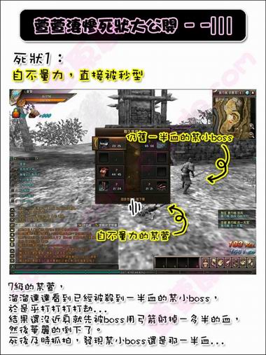 以下四幅特型截图就是本人在《苍天(专区 截图 视频)》封测期间壮烈牺牲的凄惨死状。谨以此系列纪念鄙人无可名状的战斗弱神经,并向偶“死了都要爱”的《苍天》致以最无可理遇的浓情思念。