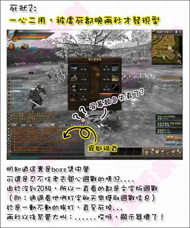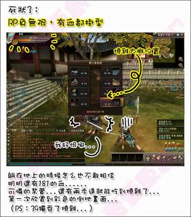 以下四幅特型截图就是本人在《苍天(专区 截图 视频)》封测期间壮烈牺牲的凄惨死状。谨以此系列纪念鄙人无可名状的战斗弱神经,并向偶“死了都要爱”的《苍天》致以最无可理遇的浓情思念。