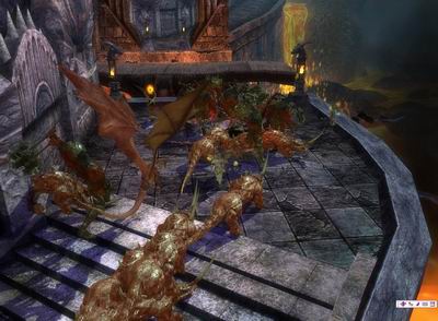 古堡的天台,数量众多的火龙谷怪物正向勇士发起进攻。这些头上长着锋利**的家伙,虽然看似笨重,却有着同归于尽的凶残本性。勇士们击毙了好些怪兽,深绿色的血浆染湿了地面,可**怪们依然毫无畏惧的实施着围攻。在这周围,还有一只小龙凄厉的尖叫着盘旋在上空,等待机会发出致命一击!看到如此凶险万分的场景,是否不寒而颤?