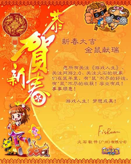 新春大吉,金鼠献瑞。借此新春佳节之际,火石携中国网游2.0代表作《游戏人生》,给全国玩家拜年啦!祝愿所有关注《游戏人生》、关注中国网游2.0,关心网游发展的玩家在鼠年里,有“鼠”不尽的好运,有“鼠”不尽的收获,每天《游戏人生》,时刻游戏人生!