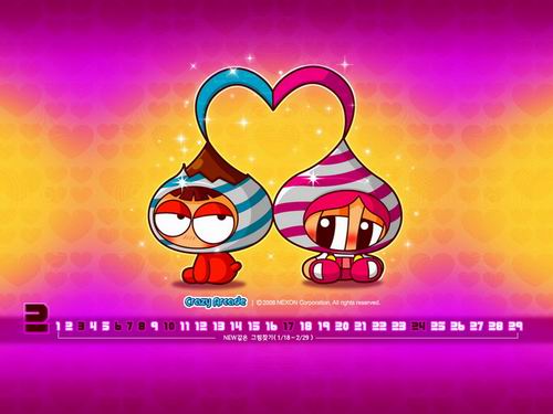 为了迎接2008年情人节,韩国知名的游戏厂商NEXON公司特地发布了一张2月份的月历壁纸,并以情人节为题材。