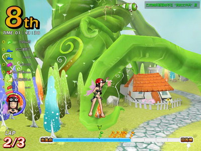 《超级跑跑》“杰克与魔豆”地图以同名童话中爬树部分为主题,画面风景秀美,参天的豆茎和五颜六色的花树营造了一个神奇的比赛场地。在弯曲的豆茎上奔驰,于枝叶之间跳跃,配以多角度的视点切换效果,让您有如置身《杰克与魔豆》的童话世界,在清新的画面中体会曲折而又浪漫的故事情节!