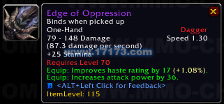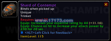 装备:击中目标时有机会提高你的攻击强度230,持续20秒