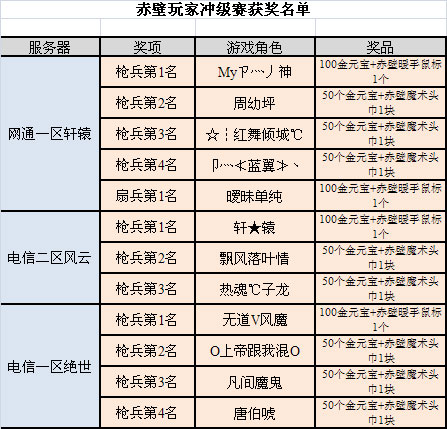 《赤壁》新服冲级赛获奖名单火爆揭晓