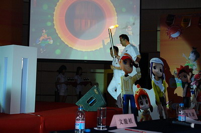 我们不能实际参加火炬传递,那对于经常玩游戏的人在游戏里是不是可以体验一把呢?现在号称体育网游的一大把。最近朋友推荐一款休闲竞速游戏给了笔者一点点启发,这游戏从名字到内容都比较符合笔者的想法:不停的跑,在奔向终点的过程中,以两条腿的跑步为最基本的动作,地图千变万化,玩家还有机会尝试跨栏、游泳、滑雪、蹦极、攀岩等等多项运动,说十项全能毫不夸张。比赛模式也丰富多彩,里面就有多人接力赛模式。那《超级跑跑》只要出张“火炬接力”新地图就可以搞定,思来想去都觉得靠谱。在网上一搜居然给搜出来了《超级跑跑》去年发布会的照片!居然有“火炬传递”的一幕!莫非他们早就想到要开这个新地图么?
