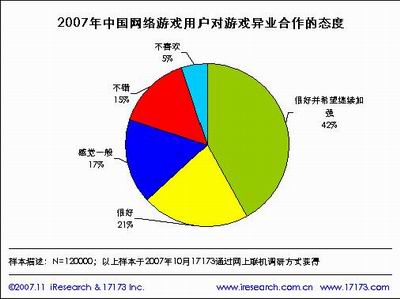 根据报告,2006年有25.8的受调查玩家表示“希望加强”异业合作,而到了2007年,这一数据上升到42%。以玩家的角度来看,由于开展促销活动,消费者有实惠可得,异业合作成为玩家喜闻乐见的市场共赢活动。不过表示“感觉一般”的玩家也上升了4.8%,玩家对异业合作活动的要求正在提高。