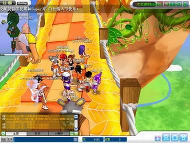 当天下午和晚上两个时段送祝福的活动,小丑们运指如飞,眼珠瞪得老大,生怕错过玩家的祝福,祝福实在太多了,大家争先恐后,七嘴八舌,小丑是忙得团团乱转,满头大汗。玩家们当然会用红线绑住小丑,还把小丑从树丛里拽出来。实在是忒热情了,一进30人的房间密密麻麻的人呀,整个活动下来,这个情人节,小丑过得不是很浪漫呀。来看看第一手的截图吧,小丑那个狼狈样子哦,同情一把!