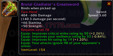 S4级别的装备有了一定的改动,原先159级别的武器被降为154级,各类属性都略微下降。