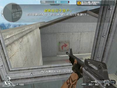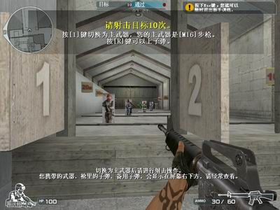 每一个第一次进入《穿越火线》的玩家,在进行了基本的角色创建之后,系统会第一时间自动弹出“新手模式”的咨询,如果对于基本操作还不太熟悉的玩家可以直接点击进入“新手训练室”。在经过地图数据的载入之后,新手玩家们就可以正式开始自己的佣兵训练了。进入地图后,玩家们会看见手中的枪械和画面上清晰明了的文字提示,每一步的操作方法用图形和文字配以说明,让每一个新手从射击到移动,从跳跃到躲闪,从投掷炸弹到使用刀械,迅速地熟练掌握每一个FPS游戏必备的动作技巧,我们不得不说运营方确实为游戏倾注了心血,为玩家考虑周到。