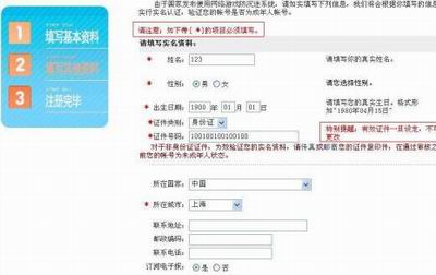 步骤二:请确实填写相应资料并注意红色部分特别提示
