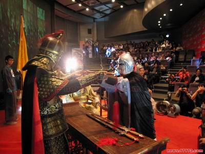 最后,求伯君和邹涛等“五虎将”穿上黄金战甲,重演古人军中誓师出征的场景,由“统帅”求伯君授予“五虎将”宝剑,象征着金山正式向中国网游市场前三甲发起冲击,发布会气氛达到最高点。