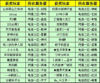 跨服争霸的声援行动活动开展以来,得到了广大玩家朋友的热情参与。玩家朋友们纷纷给自己喜欢的公会投票和留言,希望他们能够赢得比赛。玩家朋友们的热情高涨,为自己喜欢的公会的输赢而或喜或悲,但不变的一直是对他们的支持。是的,在跨服战的战场上,没有失败者;参与过,努力过,拼搏过,就是好样的,就是英雄。《武林外传》从这些热情参与的玩家朋友中,抽取了30位幸运的获奖玩家。
