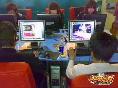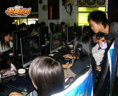 比赛的过程中,网吧的收银员在旁边给玩家们打气加油!比赛完了才知道,她的男友也在里面。最后玩家还自发组织了一场情侣PK赛!看看谁的“爱心”多。向着第一名的奖品冲击!!虽然真正的情侣只有2队,但他们是配合最默契的两对哦!