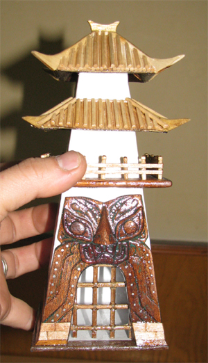 该玩家在论坛中称,“手工克隆游戏中的建筑、装备并不是欧美玩家的专利。其实我们身边有很多多才多艺的玩家”,“我非常喜欢《封神榜2》,场景设计得非常逼真和玄幻,充满了神话色彩,不得不佩服美工的水平。我用木头模仿游戏中的建筑做了相同的模型,基本上与原设计差不多吧,发上来同大家分享”,该玩家同时表示下一步计划将整个“朝歌城”用木料完整的还原下来,这将是一个更加庞大宏伟的工程,值得期待。