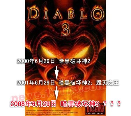 韩国知名游戏网站THISISGAME提出多种迹象显示,Blizzard有可能在WWI08揭露《暗黑破坏神3》相关想法;首先,此次WWI08是在6月28、29日在巴黎举行,过去像《暗黑破坏神2》与资料片《暗黑破坏神2:毁灭之王》的上市日期分别是2000年6月29日、2001年6月29日,因此6月29日将很可能是“恶魔”再次现身的日子。