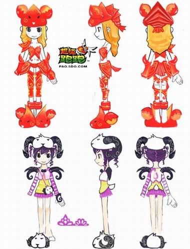 《超级跑跑》熊猫服装和蜂王服装原画